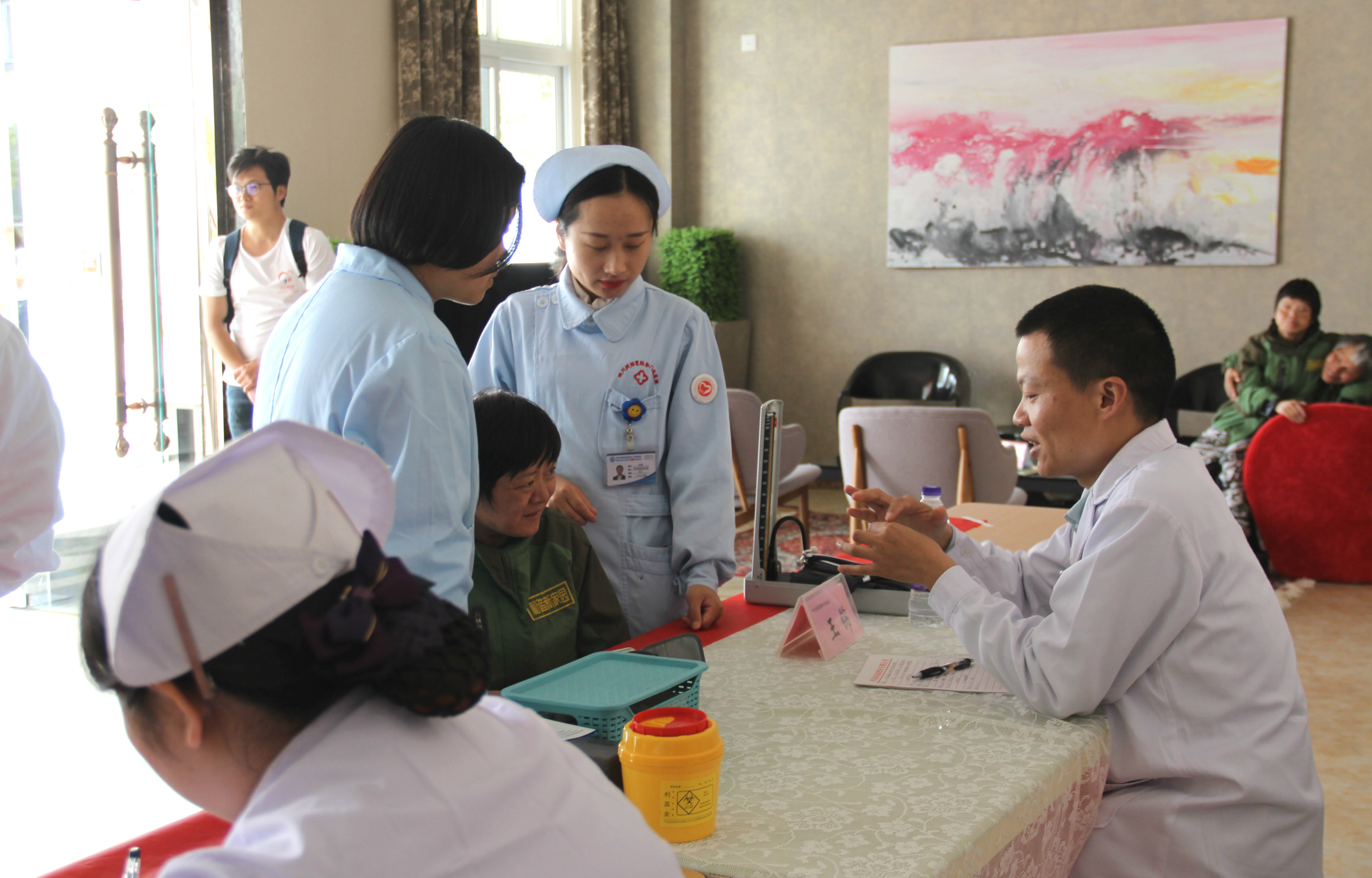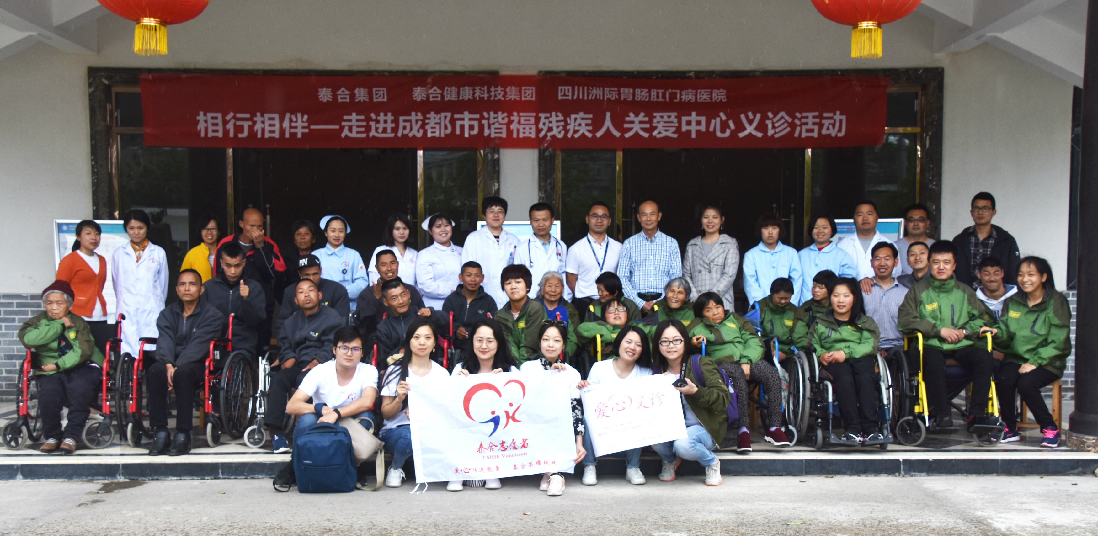 4月26日,集团总部及泰合健康科技集团、四川洲际胃肠肛门病医院的志愿者,前往位于彭州市通济镇的成都市谐福残疾人关爱中心,为这里的残障人士进行义诊和健康康复咨询。